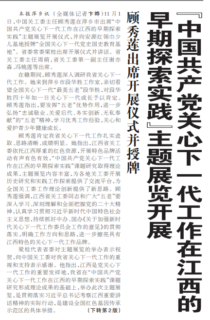- 顾秀莲:在纪念江西省关工委成立30周年暨全省关心下一代工作表彰大会上的讲话2021-12-20